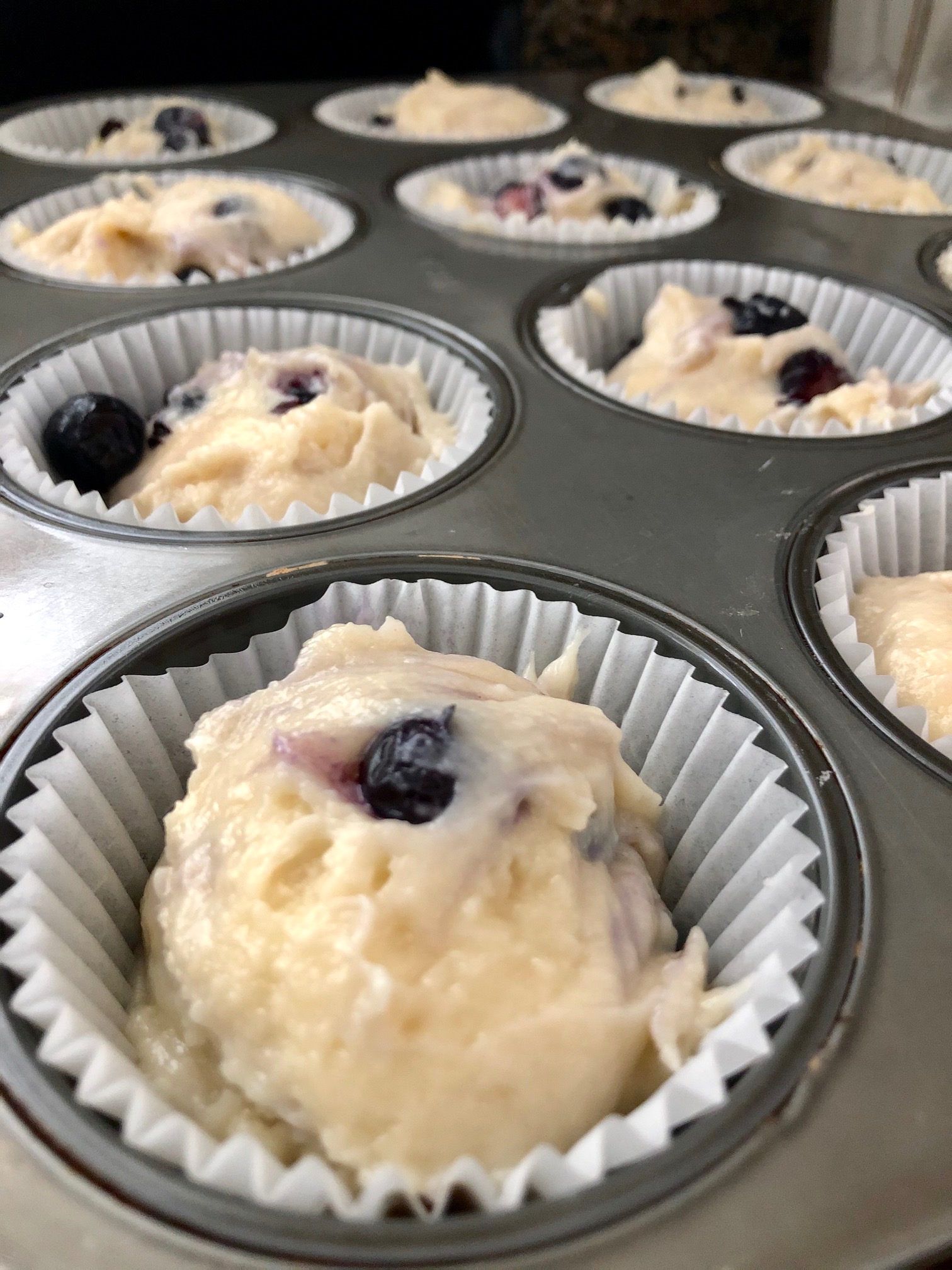- With an ice cream scooper or spoon, fill each muffin tin with the batter about 3/4 of the way up.