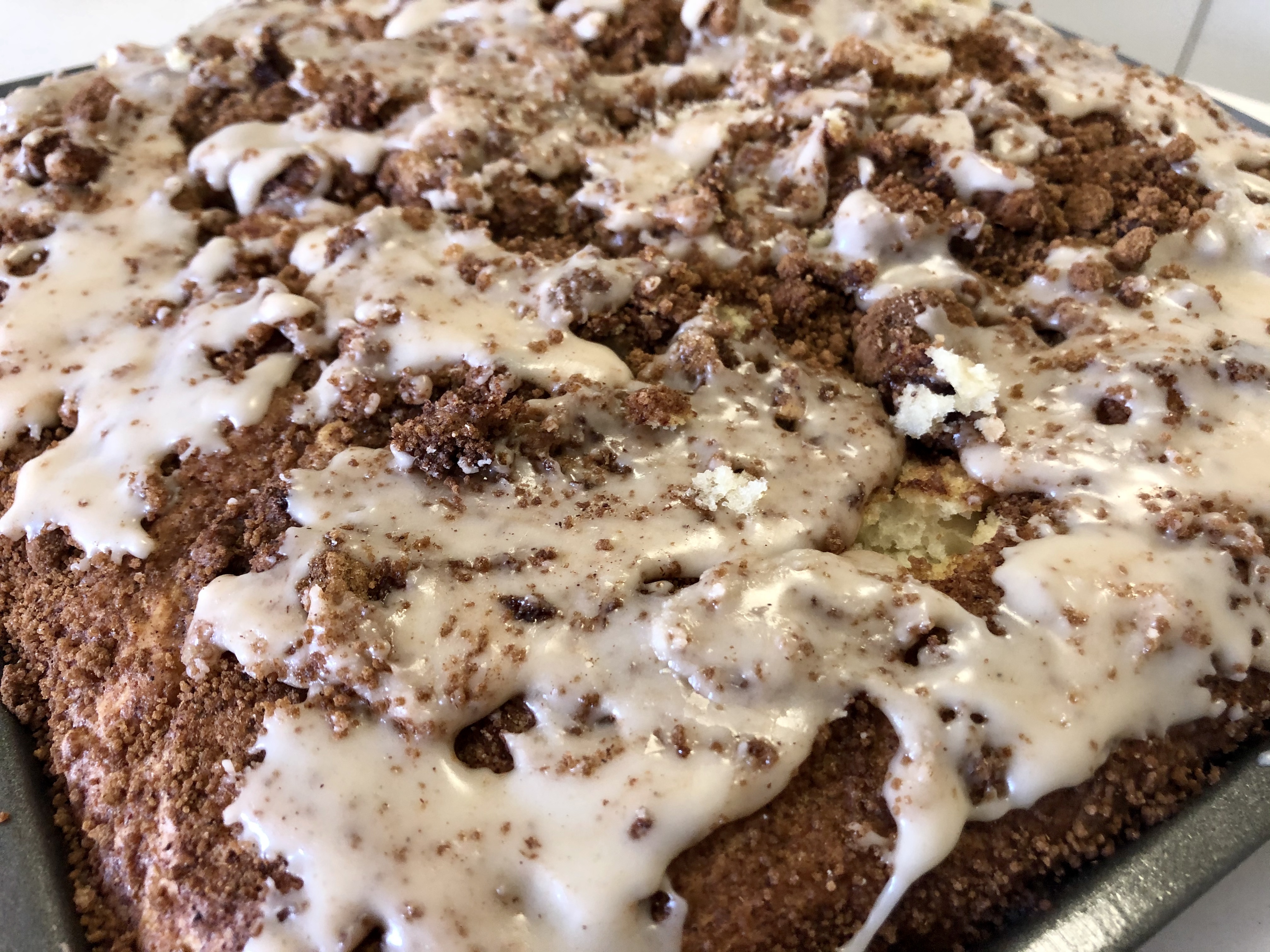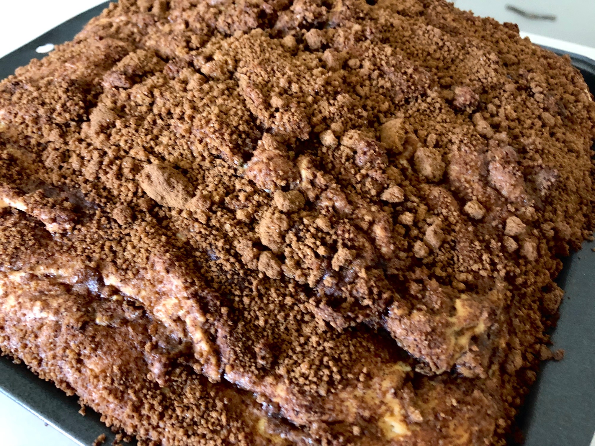 The firm top cinnamon crust with a moist cake consistency is an unbeatable combination. Because the recipe calls for white sugar, brown sugar and icing sugar, it’s a fairly sweet dessert.