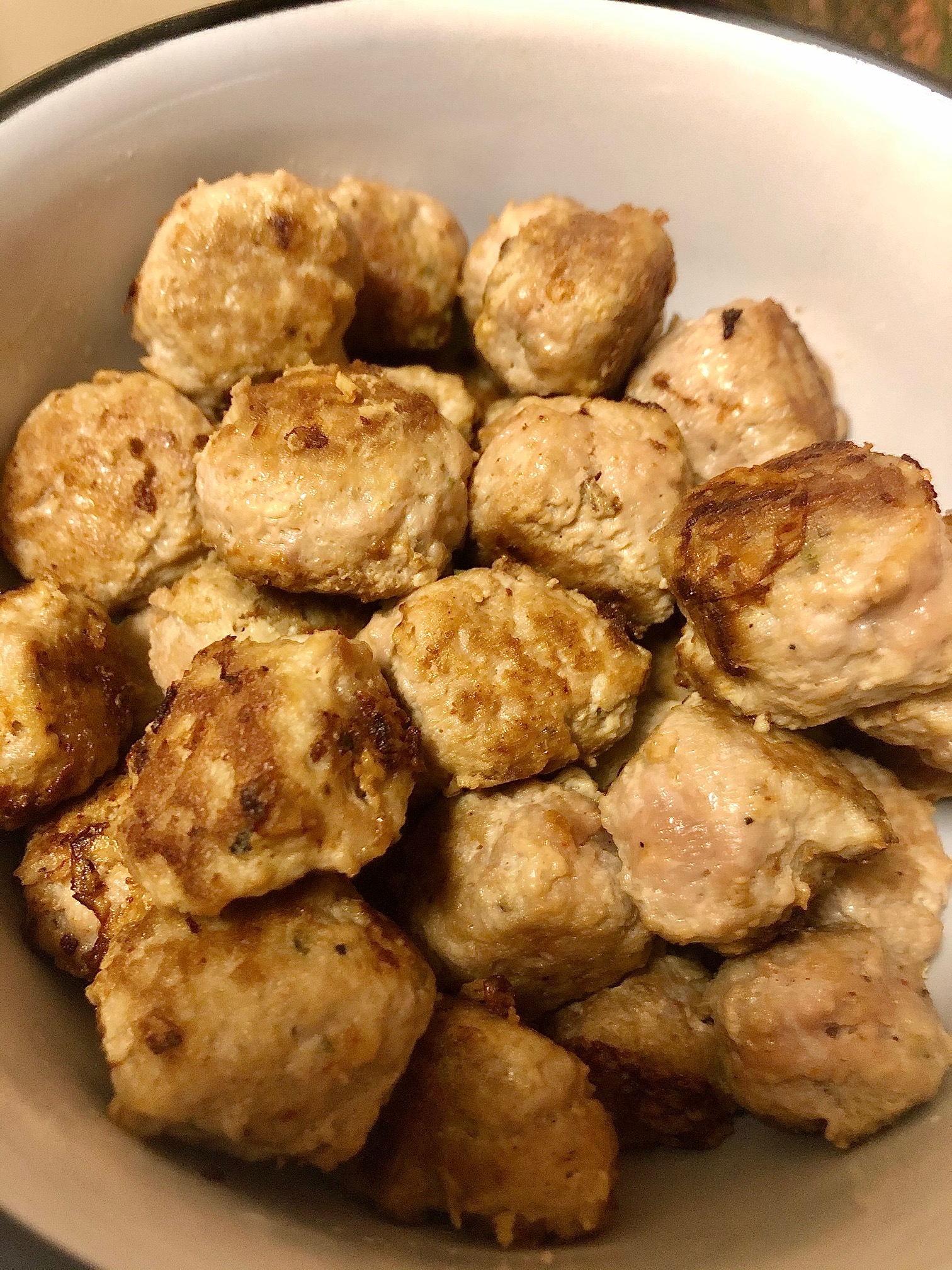 - In a large pan drizzled with olive oil set to medium-high, start placing as many meatballs as you can in the pan. Let cook for about 5 minutes, or until the outside of the meatballs are brown. They will continue to cook in the soup later.