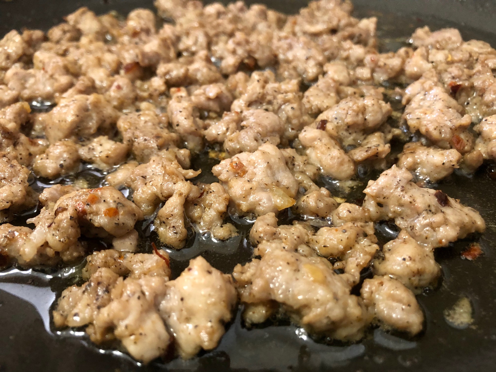 - Chop the sausage. If wrapped in a casing, remove from casing and break apart with a knife or by hand.